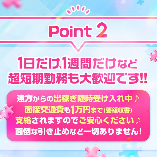 朝10時~翌5時(完全自由出勤) 1日2~3時間OK! |