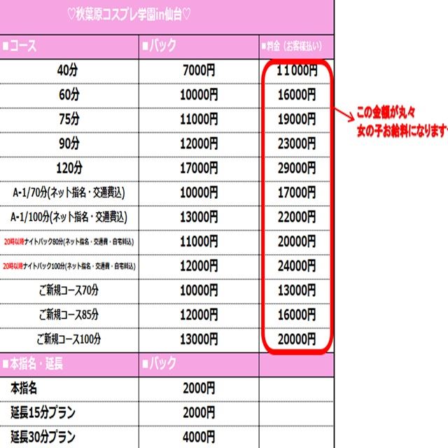 プレイ料金である60分16,000円がそのままアナタのお給料になるんです♪