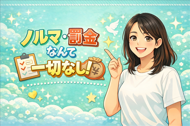ペナルティの心配をせず、その時の状況に合わせて相談しやすい環境なので、未経験の方や掛け持ち希望の方にも始めやすい職場です♡