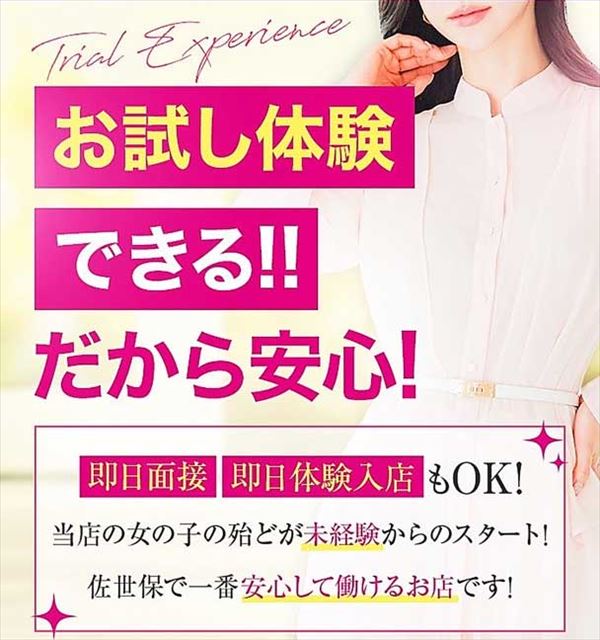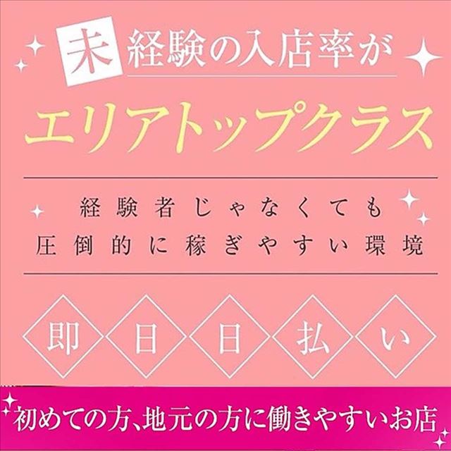 リピート指名につなげられると自信ももてるようになり、入店したてのうちからポジティブなモチベでどんどん稼げるように。はじめてで不安でも体験入店するとひたむきな姿勢を評価してもらえる、そんな稼ぎやすそうな居心地のよさもしっかり確かめられます。