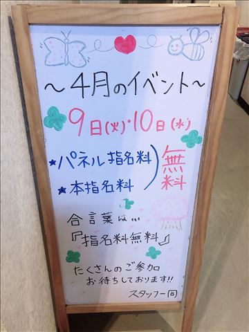 ★本日最終日!4月10日(水)は指名料、パネル指名…