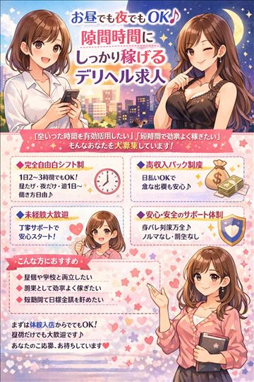 スタッフからいろいろ話を聞くだけでわかるくらいシンプル、だからふたりきりになる派遣型でも落ち着いてサービスできるでしょう。むりがないペースをキープしながら続けられて安心感もたっぷり、だからプライベートともうまくバランスをとって両立できます。