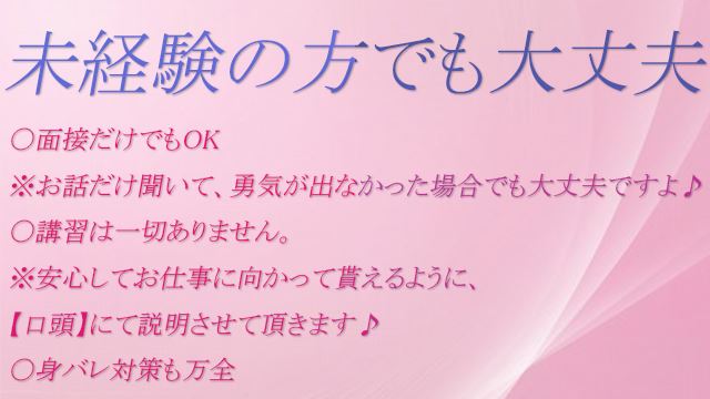 きてくれるのはマナーあるお客様ばかり、だからまったく経験がなくてもサービスするうえでやりにくさはまったくありません。採用する前からあらゆる面でサポートしていて、たとえば体験入店するときに単発でのバイトみたいに日払いされるのもそのひとつ。