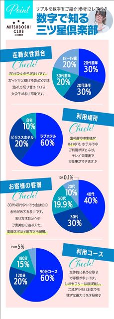 お客様も贅沢なひと時を求めるゆとりたっぷりな男性が多く、ロングコースでの指名ばかりなのも未経験の子ががっつり稼げるわけ。金銭的にも余裕がある40代は自宅でひっそりというよりも、きれいで豪華なホテルを選ぶため衛生的にも安心して働けるはず。