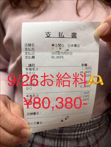 9/26 未経験スタート! Sちゃんのお給料は7万…