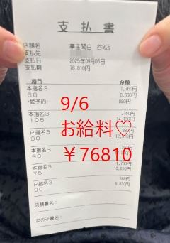 9/6 未経験からのスタート♪ Uちゃんのお給料大…