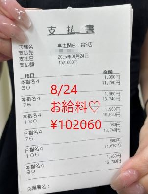 8/24 本指名様多数! Sちゃんのお給料大公開!!