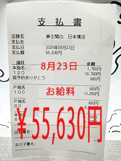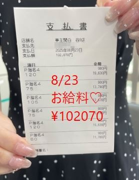 8/23 入店3カ月Mちゃんのお給料大公開!!
