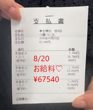 8/20 未経験スタートHちゃんのお給料大公開!!