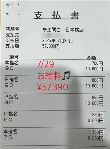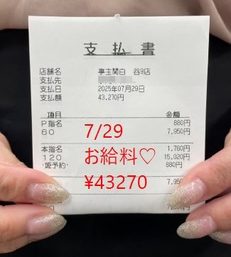 7/29 入店初月♪ Yちゃんのお給料大公開!!