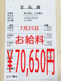お昼から出勤で稼げています☆¥70,650円