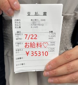 7/22 未経験スタートHちゃんのお給料大公開!!