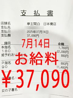 7/14 入店2か月目♪ Rちゃんのお給料大公開!!