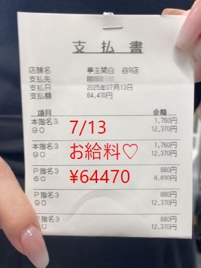 7/13 未経験からのスタート♪ Uちゃんのお給料…