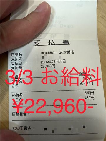 新人女性のお給料♡¥22,960円