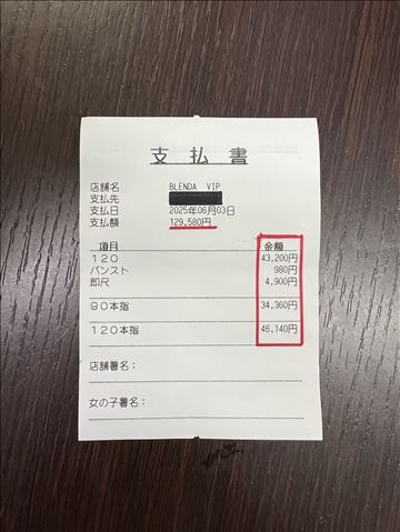 「ブレンダVIPで...」ロング2本を含んでお給料…