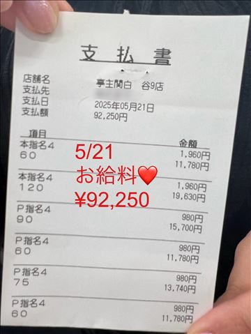5/21のお給料 日々の!?【これが高級エステのお…