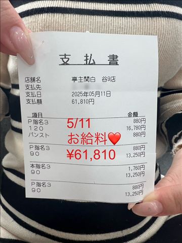 5/11 未経験スタート♪ Hちゃんのお給料大公開…