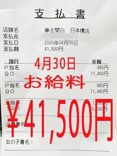 4/30 入店3か月目! Mちゃんのお給料大公開!!
