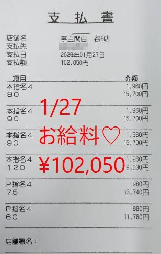 ✨29歳 12時~24時出勤で¥102,050稼い…