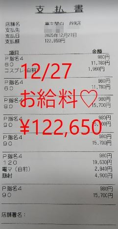 ✨29歳 12時~24時出勤で¥122,650稼い…