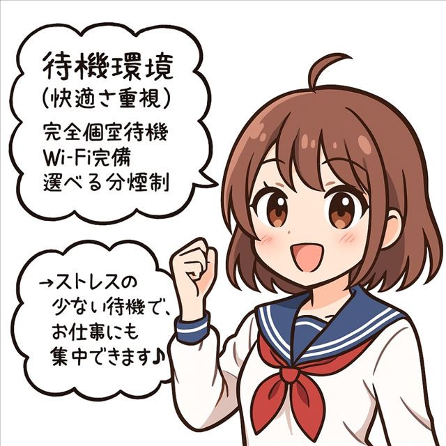 休憩中の女の子がゆっくり身体を休められるように個室待機所を用意しています!