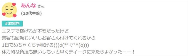 採用担当 ■ティーク店長■ 「癒し」をコンセプトにしたマッサージ主体のエステ店☆彡過激なサービスが求められる業種とは違い、病気の心配がない♪基本プレイに脱ぎなし・粘膜接触なし「完全ハンドサービス」のお仕事です(^^)未経験の方にもオススメのお店です!ぜひ、お問合せくださいませ♪