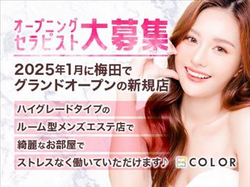 皆さま初めまして!❤️❤️❤️大阪梅田で1月にOPENしたCOLOR(カラー)と申します♪🤗現在オープニングメンバーを大募集中です🤗少しずつですが当店のセラピストさん達も増えてきて、本当に嬉しく思います♥しっかりお客様もセラピストさんにも喜んでもらえる、良いお店をこれから作っていけるように一つずつ頑…