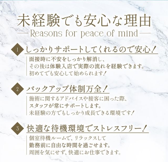「はじめてのメンズエステのお仕事でできるか不安...」そういった方も安心して下さい!