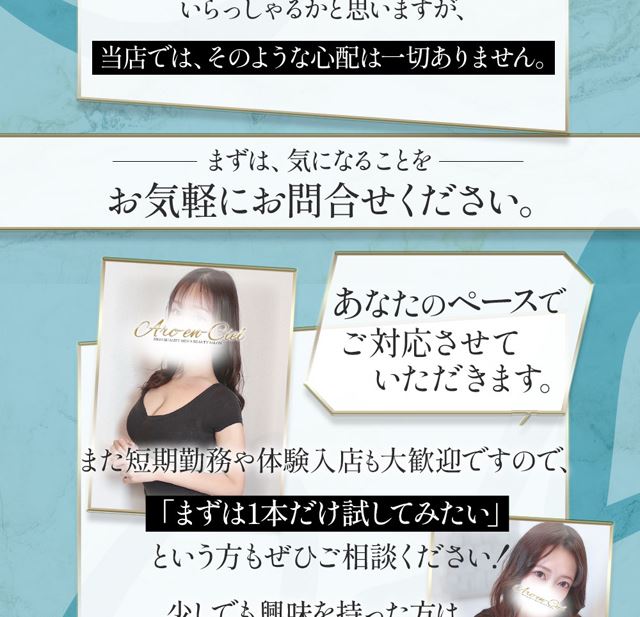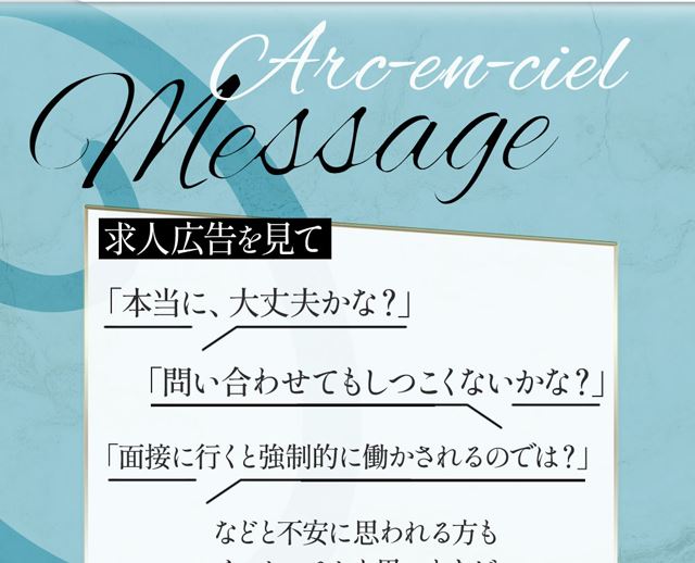 『Arc-en-Ciel(アルカンシェル)』では、未経験の方も安心してお仕事をしていただけますっ✨