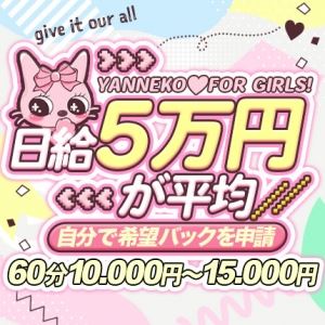 やんちゃな子猫の特徴は「一人の女の子が長く続く」ことです。◎永続的に高額バックが続くこと。◎スタッフ対応。◎待機室などの居心地のよさ。◎安定した顧客数。◎関西最大級大型グループだからこその信頼感。◎とにかくやんちゃな子猫にいれば「稼げる!!」と言うこと。日給50,000円以上が平均!!個室待機完備、送迎あり、完全日払…