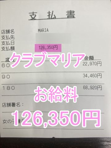 ❤お給料紹介❤❤出勤時間:12:00~18:00❤勤務時間:6時間❤接客人数:4名様❤お仕事詳細120分+30分延長 56,540円60分 20,320円120分 40,640円60分 20,320円この日のお給料137,820円キャストさんから一言【忙しくさせて頂きありがとうございます💕】クラブマリアは稼ぎたい女…