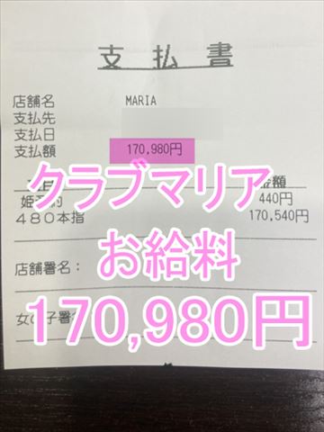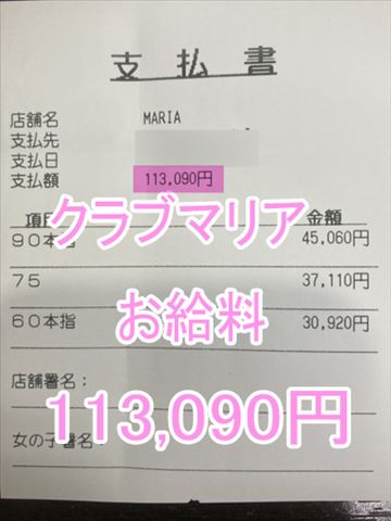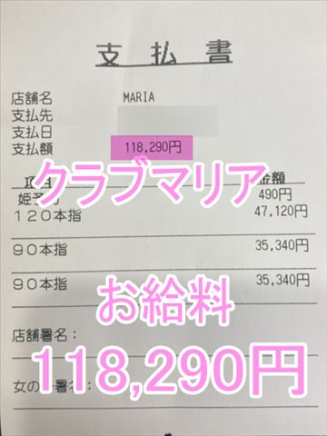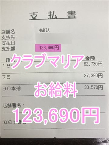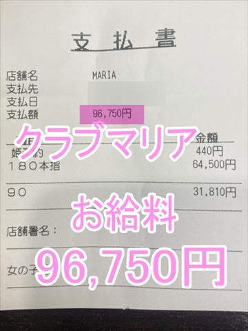 ❤お給料紹介❤❤出勤時間:12:00~16:00❤勤務時間:4時間❤接客人数:2名様❤お仕事詳細180分 64,500円90分 31,810円この日のお給料96,750円キャストさんから一言【いつもありがとうございます💕】クラブマリアは稼ぎたい女性を全面サポート!!気になる貴女様は是非ご連絡を!!