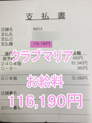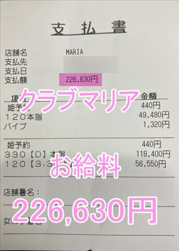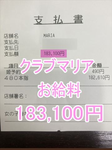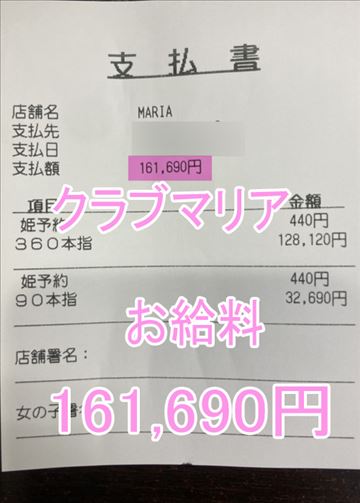 ❤お給料紹介❤❤出勤時間:12:00~21:00❤勤務時間:9時間❤接客人数:2名様❤お仕事詳細120分 49,480円330分 +延長120分 174,950円この日のお給料226,630円キャストさんから一言【沢山稼げて嬉しいです💕】クラブマリアは稼ぎ…