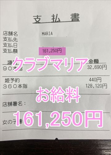 ❤お給料紹介2❤出勤時間:12:00~19:00❤勤務時間:7時間❤接客人数:2名様❤お仕事詳細90分 32,690円360分 128,120円この日のお給料161,250円キャストさんから一言【仲良し様ありがとうございます💕】クラブマリアは稼…