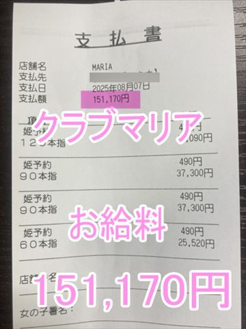 ❤8月7日のお給料紹介❤❤出勤時間:12:00~18:00❤勤務時間:6時間❤接客人数:4名様❤お仕事詳細120分コース 49,090円90分コース 37,300円90分コース  …