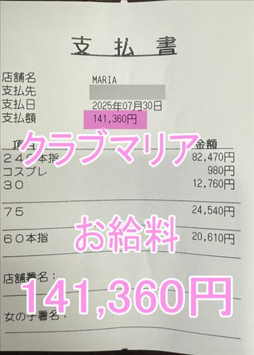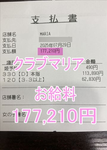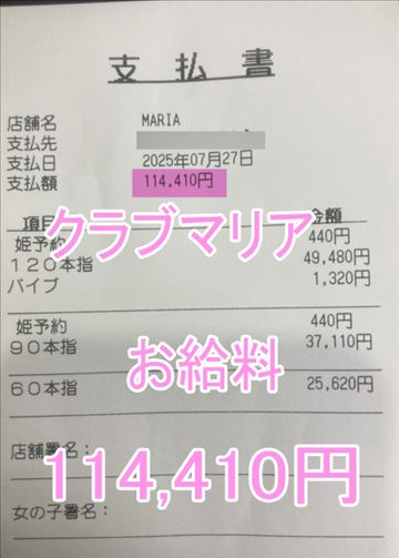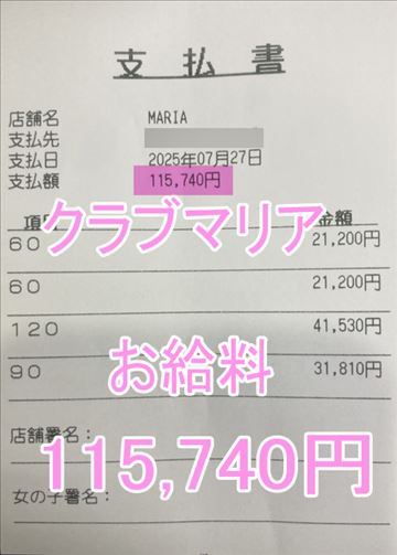 ❤7月30日のお給料紹介❤❤出勤時間:13:00~20:00❤勤務時間:7時間❤接客人数:3名様❤お仕事詳細240分コース 82,470円30分延長 12,760円75分コース  …