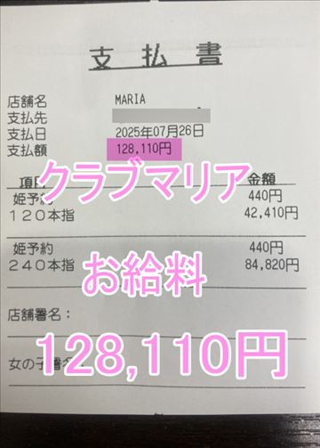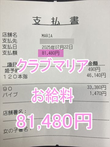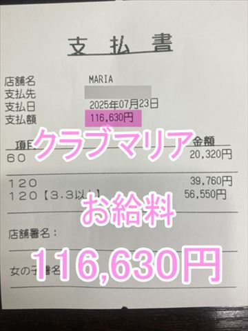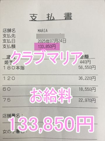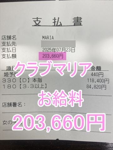 ❤7月23日のお給料紹介❤❤出勤時間:12:00~20:00❤勤務時間:8時間❤接客人数:1名様❤お仕事詳細330分コース 118,400円180分延長 84,820円この日のお給料203,660円キャストさんから一言【貸し切りありがとうございます💕】クラブマリアは…