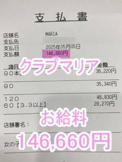 ❤5月03日のお給料紹介❤❤出勤時間:15:00~21:00❤勤務時間:6時間❤接客人数:2名様❤お仕事詳細120分コース 41,530円150分延長 70,690円90分コース 31,810円この日のお給料144,030円キャストさんから一言【延長してくれるお客様多くて嬉しいです💕】ク…
