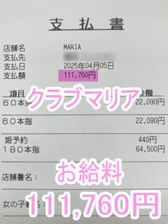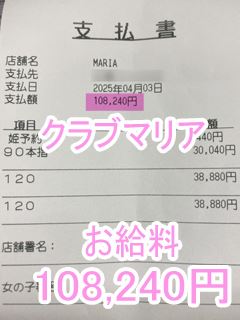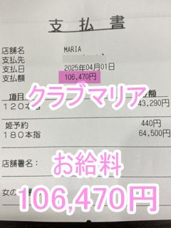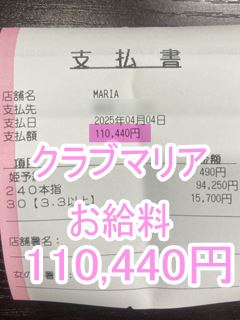 ❤4月4日のお給料紹介❤❤出勤時間:19:30~24:00❤勤務時間:4時間30分❤接客人数:1名様❤お仕事詳細240分コース+30分延長 110,440円この日のお給料110,440円キャストさんから一言【最初から延長付けてくれる本指名様、かっこいい✨】クラブマリアは稼ぎたい女性…