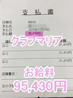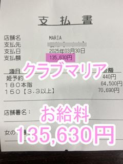 ❤3月28日のお給料紹介❤❤出勤時間:12:00~18:00❤勤務時間:6時間00分❤接客人数:1名様❤お仕事詳細360分コース 122,820円この日のお給料122,820円キャストさんから一言【いつもありがとうございます💕】クラブマリアは稼ぎたい女性を全面サポート!!気になる…