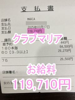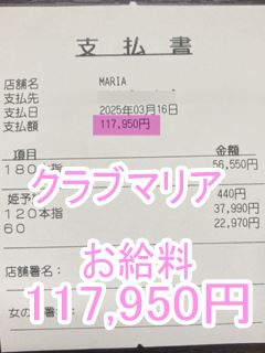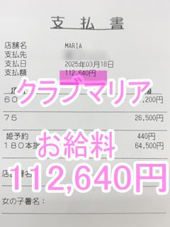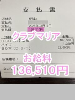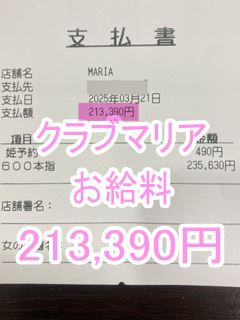 ❤3月21日のお給料紹介❤❤出勤時間:12:00~22:00❤勤務時間:10時間00分❤接客人数:1名様❤お仕事詳細600本指名 213,390円この日のお給料213,390円キャストさんから一言【ロングコースのお客様が多くて凄く嬉しいです💖】クラブマリアは稼ぎたい女性を全面サ…