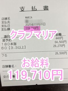 ❤3月20日のお給料紹介❤❤出勤時間:15:00~21:00❤勤務時間:6時間00分❤接客人数:2名様❤お仕事詳細180分本指名 64,940円60分延長 28,270円75分 &…