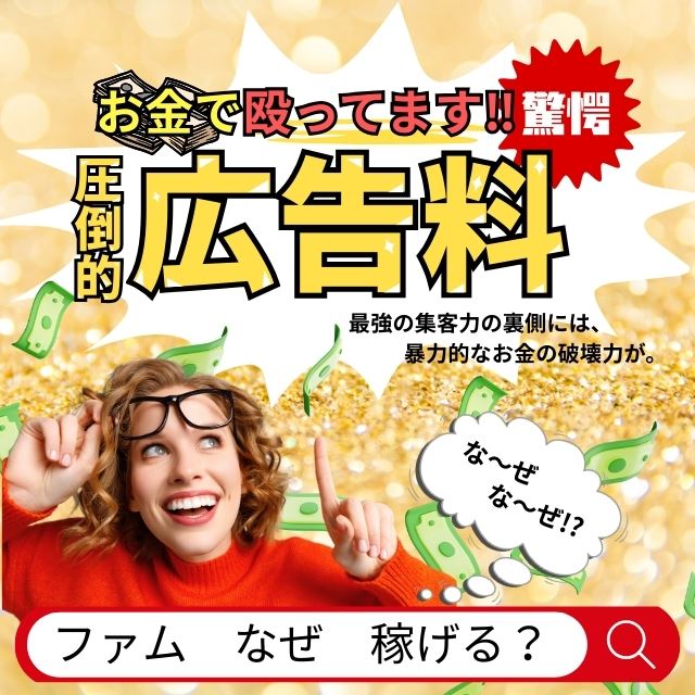 うちは本気で広告費、ぶっ込んでます。だから圧倒的に見られる、だからお客様が来る、だから稼げる。全ては“圧倒的広告料”の力。適当に集客してるお店と一緒にしないでください。本気で稼ぎたいなら、まずはうちを見てから決めて。