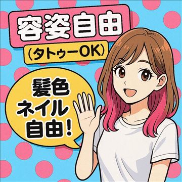 女の子はオシャレも大事なお仕事ですよね♪それは、服装やお化粧だけとは限りません!当店は、しっかりと心得ておりますので、お任せ下さい(^_-)-☆他店様では[金髪以外の派手髪はダメ!染め直してきて!][タトゥーがある方は入店不可][ピアスの量が多いor耳以外はダメ!]面接の際に断り文句を言われた経験はございませんか?も…