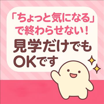《着衣プレイ専門学校 日本橋校》スタッフ西です。「気にはなるけど、勇気が出ない…」「働くつもりまではないけど、ちょっと雰囲気だけ見てみたい」そんな方へ、今日は“見学だけでもOK”というお話をしたいと思います🌸👀 まずは「見てみるだけ」で大丈夫「応募=働く」と思っていませんか?…