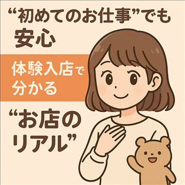 スタッフの西(セイ)です。「実際に体験してみないと分からない…」これはお仕事に限らず、多くの方が感じることだと思います。🌟 体験入店だけでも大歓迎当店では、“1日体験だけ”でも問題ありません。「思ってたより平気だった!」「逆にちょっと違ったかも…」どちらの感想も、…