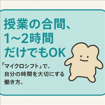 授業の合間、1〜2時間だけでもOK。“マイクロシフト”で、自分の時間を大切にする働き方。こんにちは、着衣プレイ専門学校 日本橋校のスタッフ・西(セイ)です!最近、SNSやメディアでもよく見かけるようになったキーワード──それが「マイクロシフト」。Z世代を中心に、“1日まるまる働く&…