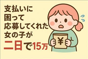 ~支払いに困って応募してくれた女の子の話~こんにちは、着衣プレイ専門学校 日本橋校のスタッフ・西(セイ)です!今回は実際にあったお話をご紹介します。「お金が足りなくて…」と勇気を出して応募してくれた女の子が、たった2日で15万円以上稼いだエピソードです。○「支払いに間に合わなくて、もうどうしようもなくて…