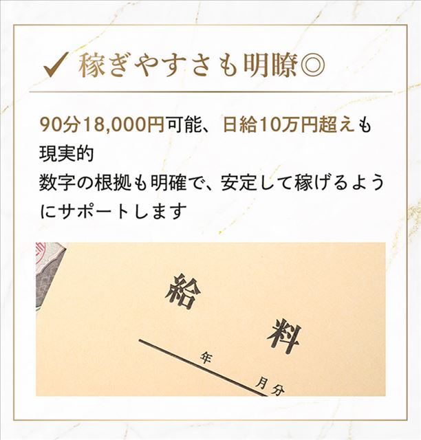 ノルマ・罰金なしで、日払い可能なので、すぐに受け取れるのも◎